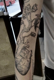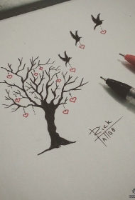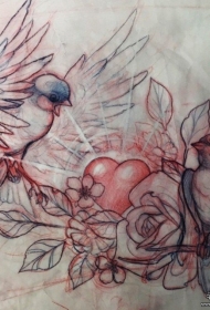 欧美小鸟巢心形玫瑰纹身图案手稿