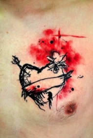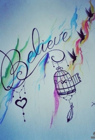 欧美英文字母心形鸟笼泼墨纹身图案手稿