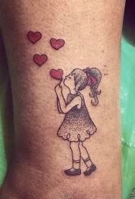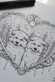 欧美线条蕾丝挂饰心形点刺纹身图案