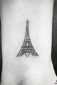 脚踝小清新埃菲尔铁塔心形纹身图案