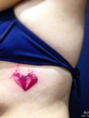 侧腰下清新泼墨心形钻石纹身图案