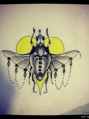 欧美昆虫心形纹身图案手稿