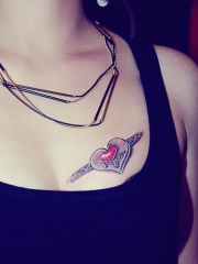 胸部创意个性心形彩色纹身图案