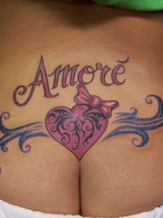 后腰彩色心形蝴蝶结字母纹身图案