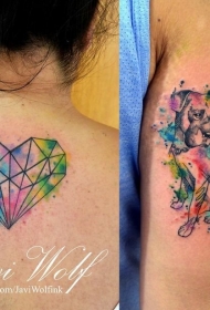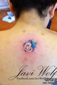 背部小清新心形泼墨彩色纹身图案
