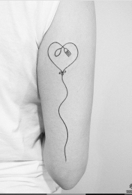 大臂线条小清新心形气球纹身图案