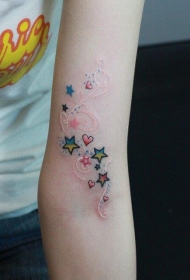 美女手臂好看的心形与五角星纹身图案