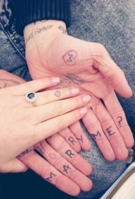情侣手指红色心形英文纹身图案