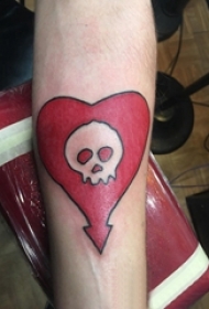 男生手臂上彩绘水彩素描创意骷髅心形纹身图片