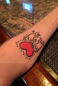 男生手臂上彩绘简单抽象线条心形和卡通人物纹身图片