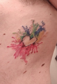 男生侧腰上彩绘渐变几何简单线条心形纹身图片