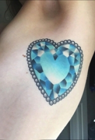 女生侧腰上蓝色渐变几何线条心形钻石纹身图片