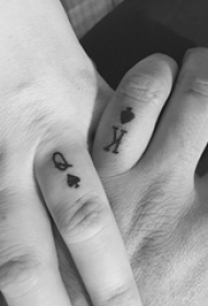情侣手指上黑色简单线条字母和心形纹身图片