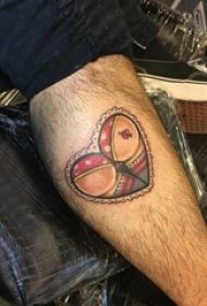 男生小腿上彩绘水彩素描创意有趣搞怪心形纹身图片
