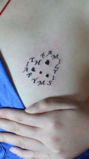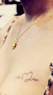 女生胸部字母组成的心形纹身