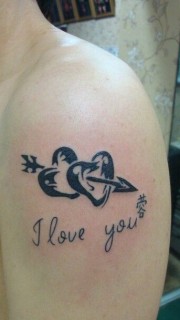 个性情侣肩部唯美漂亮的心型图腾纹身