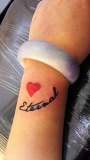 手腕红心英文遮伤疤纹身