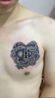 男生前胸超酷的爱心锁链纹身图片