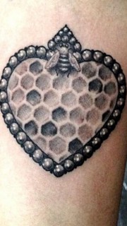 小臂上爱心蜂巢纹身