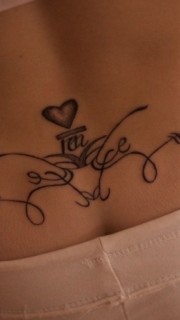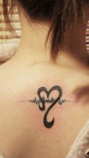 靓女后背图腾爱心与心电图纹身