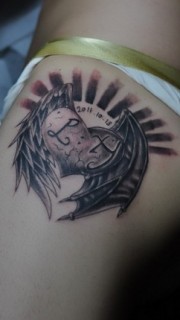 臀部翅膀心形纹身图案