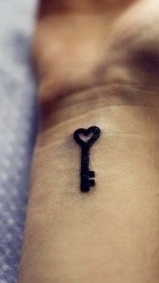 手腕心形钥匙纹身图案