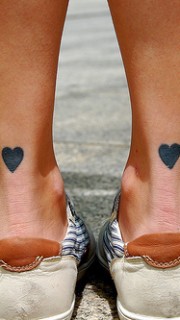 女人腿部小巧精美的图腾爱心纹身图片