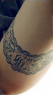 个性女生腿部蕾丝性感纹身