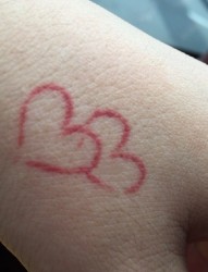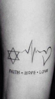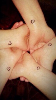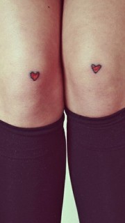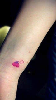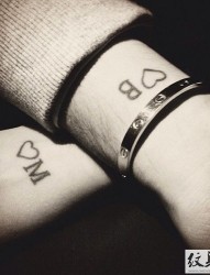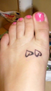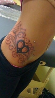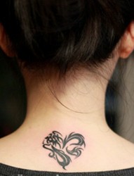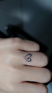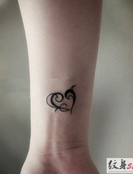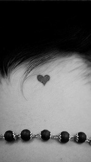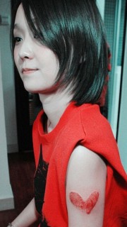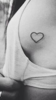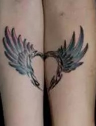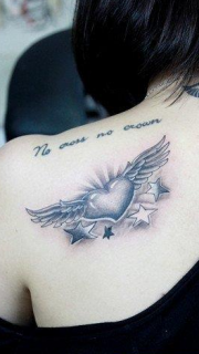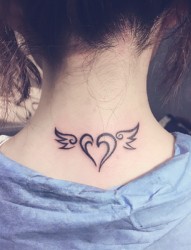 女生肩背潮流的黑灰爱心翅膀纹身图案