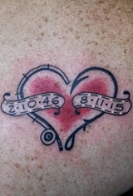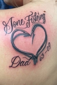 女生背部黑灰素描点刺技巧创意心形花体英文纹身图片