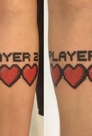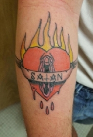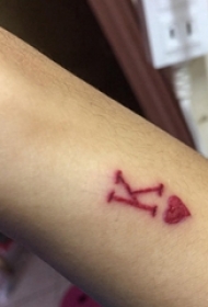 男生手臂上彩绘几何简单线条英文和心形纹身图片