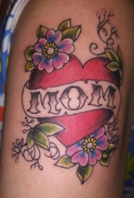 男生手臂上彩绘简单线条植物花朵和英文心形纹身图片