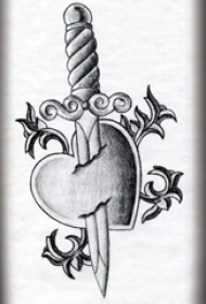 黑灰素描点刺技巧创意心形匕首纹身手稿
