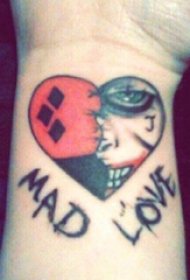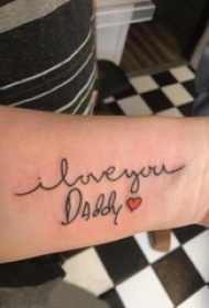 男生手臂上彩绘简单线条英文和心形纹身图片