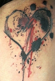 女生大腿上彩绘水彩素描红黑撞色心形纹身图片