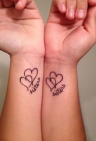 闺蜜手臂上黑色线条创意文艺心形纹身图片