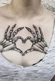 女生锁骨下黑灰素描点刺技巧创意比心纹身图片