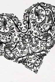 黑灰素描创意精美花朵花纹心形纹身手稿