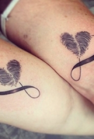 情侣手臂上黑色线条素描创意指纹心形纹身图片