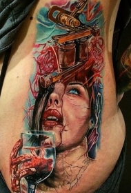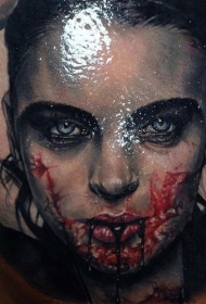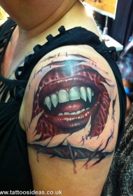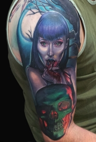 肩部令人毛骨悚然的彩色血腥吸血鬼纹身图案