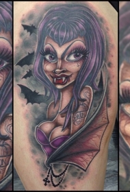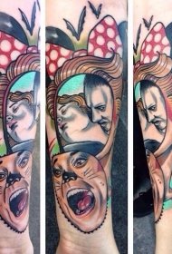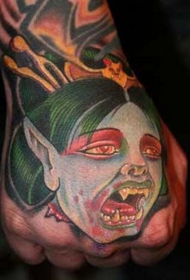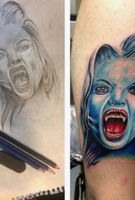 手臂彩色吸血鬼女人脸卡通纹身图案