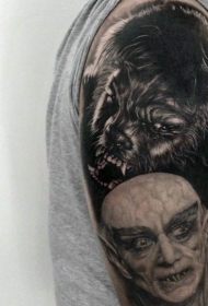 现实主义风格黑灰色狼人和吸血鬼纹身图片