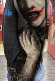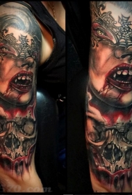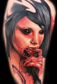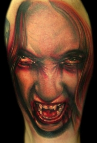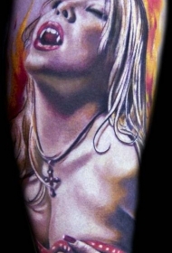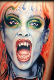 手臂逼真的彩色吸血鬼女人肖像纹身图片