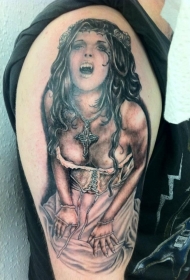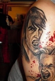 肩部彩色恐怖电影像血腥吸血鬼妇女纹身
