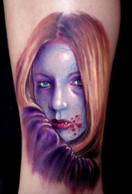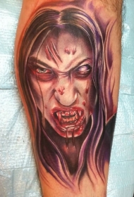 腿部现代风格的彩色血腥吸血鬼女人纹身