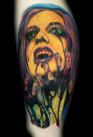 腿部彩色可怕的彩色血腥女吸血鬼纹身