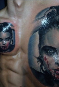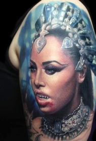 写实风格彩色血腥吸血鬼女人肖像纹身图案
