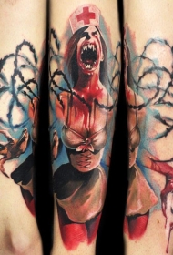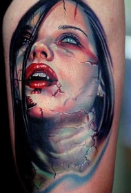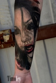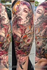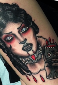 手臂可怕的彩色血腥吸血鬼女人纹身图案
