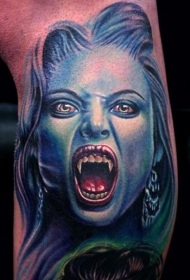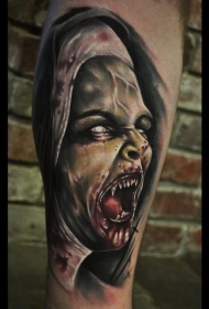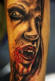 恐怖电影彩色血腥吸血鬼女人纹身图案