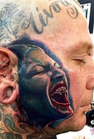 逼真的彩色邪恶吸血鬼肖像纹身图案